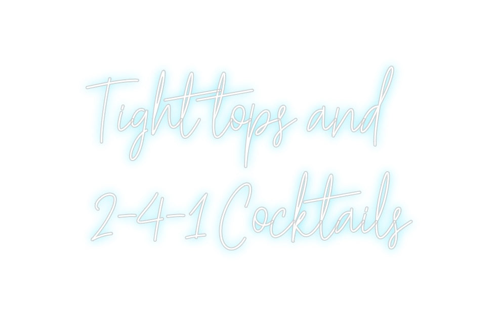 Text: Tight tops and 2-4-1 Cocktails Text Align: left Font: HestericaColour: Ice BlueSize: 100cm wide / 100cm X 57.59cm / 39.37in X 22.67inBackboard: Whole Board (free upgrade)Backboard Colour: Clear Acrylic BackboardJacket: Coloured JacketMounting: Wall mounting screwsAdd a Heart o...