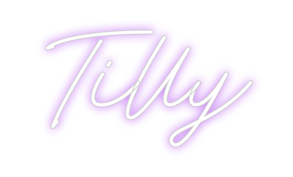Text: Tilly♡ Text Align: centerFont: BayshoreColour: PurpleSize: 60cm wide / 60cm X 32.53cm / 23.62in X 12.81inBackboard: Cut to ShapeBackboard Colour: Clear Acrylic BackboardJacket: Coloured JacketMounting: HangingAdd a Heart or Star (Optional): None (Default)Neon Tube Thickness: Bo...