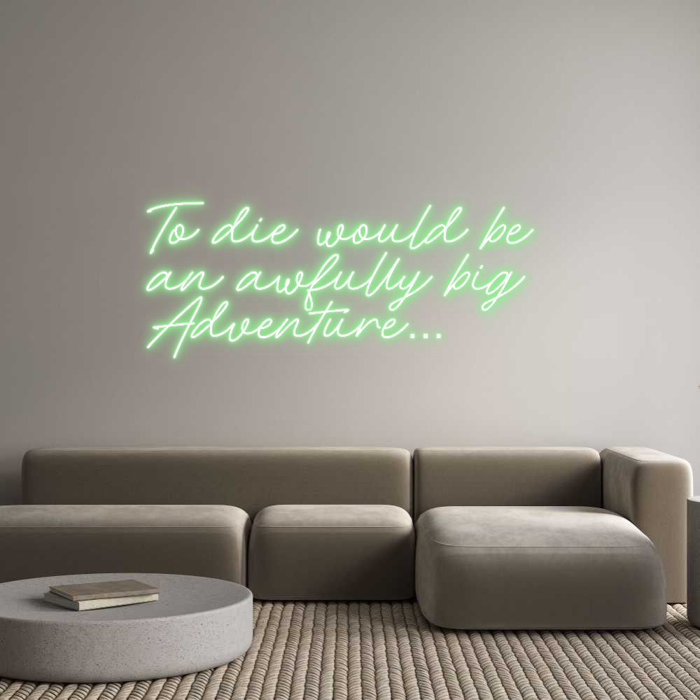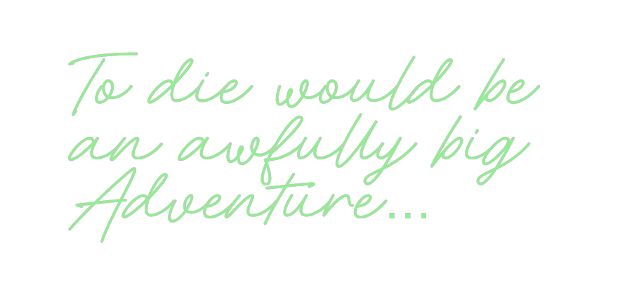 Text: To die would be an awfully big Adventure… Text Align: LeftFont: RocketColor: Light GreenSize: 80cm wide / 80cm X 43cm / 31.5in X 16.93inBackboard: Cut to ShapeBackboard Color: Clear Acrylic BackboardJacket: Coloured JacketMounting: Wall mounting screwsAdd a Heart or Star (Op...