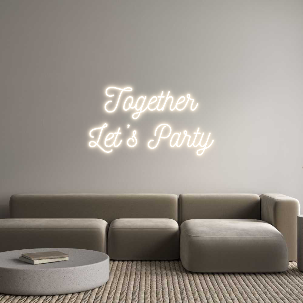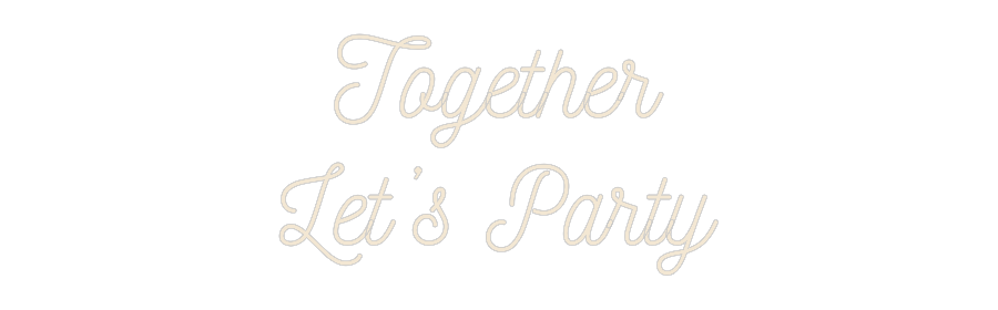 Text: Together Let’s Party Text Align: CenterFont: NickainleyColor: Warm WhiteSize: 60cm wide / 60cm X 33.16cm / 23.62in X 13.05inMaterial: IndoorBackboard: Cut to Letter (free upgrade)Jacket: Coloured JacketMounting: HangingAdd a Heart or Star (Optional): None (Default)Neon Tube Th...