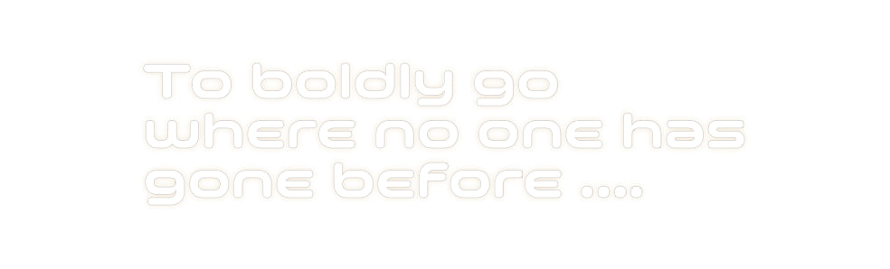 Text: To boldly go where no one has gone before …. Text Align: left Font: SpaceColour: Warm WhiteSize: 80cm wide / 80cm X 19.41cm / 31.5in X 7.64inBackboard: Cut to ShapeBackboard Colour: Clear Acrylic BackboardJacket: White JacketMounting: Wall mounting screwsAdd a Heart or ...