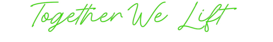 Text: Together We Lift Text Align: leftFont: RocketColour: GreenSize: 100cm wide / 100cm X 14.52cm / 39.37in X 5.72inBackboard: Cut to ShapeBackboard Colour: Clear Acrylic BackboardJacket: Coloured JacketMounting: HangingAdd a Heart or Star (Optional): None (Default)Neon Tube Thickne...
