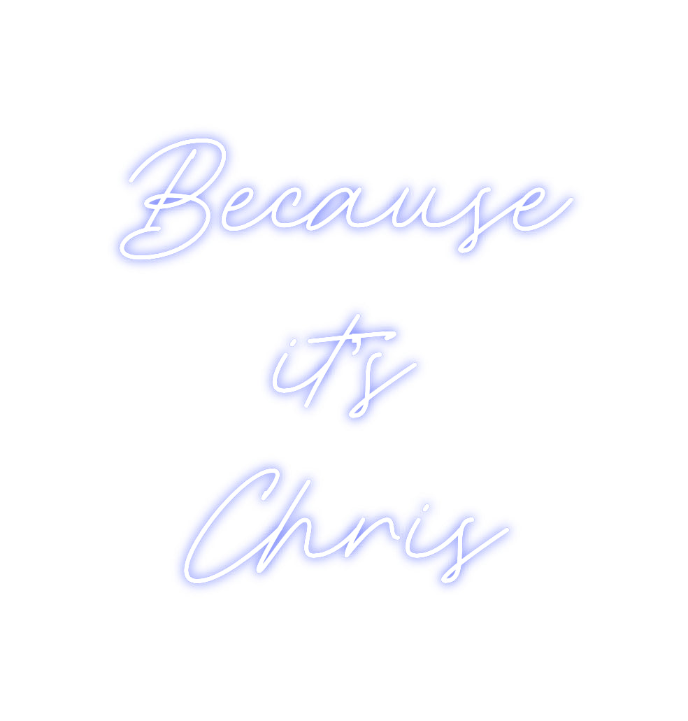 Text: Because it’s Chris Text Align: center Font: RocketColour: BlueSize: 40cm wide / 40cm X 39.49cm / 15.75in X 15.55inBackboard: Cut to ShapeBackboard Colour: Clear Acrylic BackboardJacket: Coloured JacketMounting: HangingAdd a Heart or Star (Optional): None (Default)Neon T...
