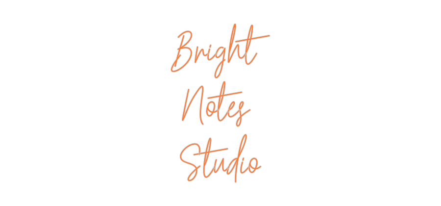 Text: Bright Notes Studio Text Align: centerFont: HestericaColour: OrangeSize: 40cm wide / 40cm X 58.36cm / 15.75in X 22.98inBackboard: Cut to ShapeBackboard Colour: Clear Acrylic BackboardJacket: Coloured JacketMounting: Wall mounting screwsAdd a Heart or Star (Optional): None (D...