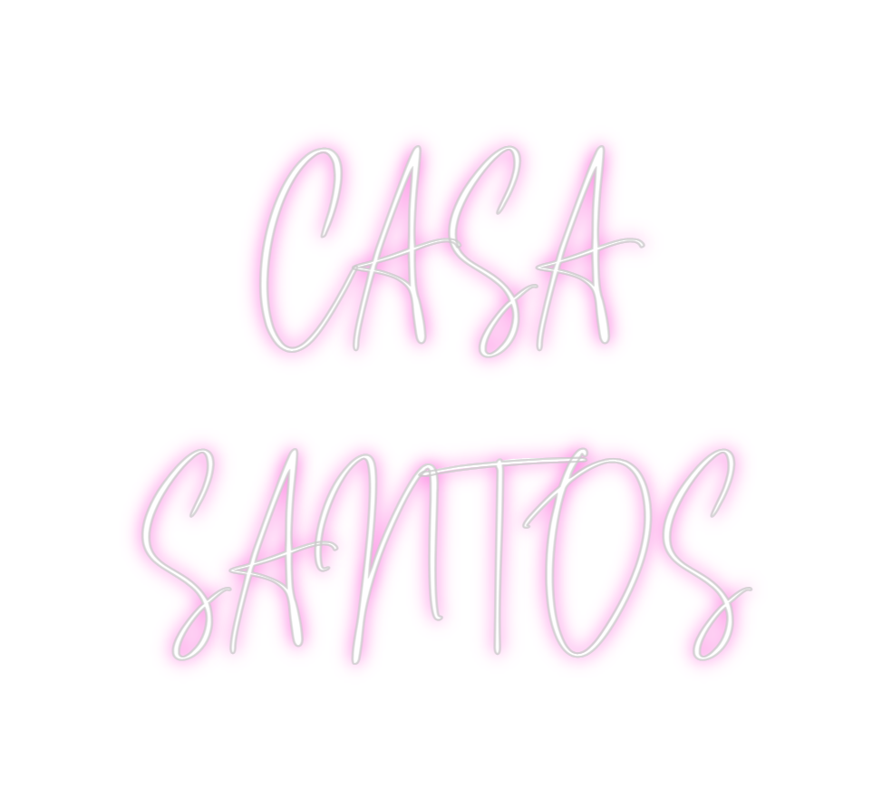 Text: CASA SANTOS Text Align: center Font: OttawaColour: PinkSize: 60cm wide / 60cm X 50.78cm / 23.62in X 19.99inBackboard: Cut to Letter (free upgrade)Jacket: Coloured JacketMounting: Wall mounting screwsAdd a Heart or Star (Optional): None (Default)Neon Tube Thickness: Bold T...