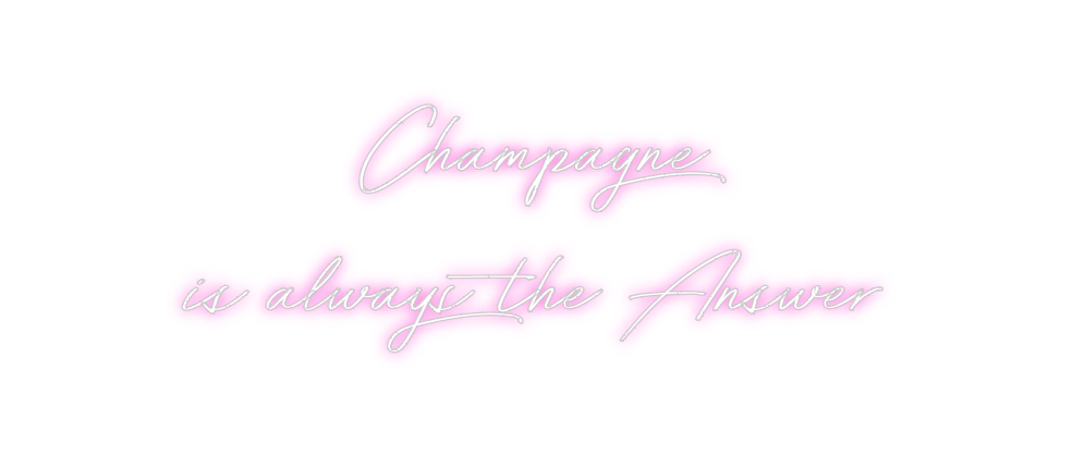 Text: Champagne is always the Answer Text Align: center Font: BayshoreColour: PinkSize: 120cm wide / 120cm X 43.87cm / 47.24in X 17.27inBackboard: Cut to Letter (free upgrade)Jacket: Coloured JacketMounting: Wall mounting screwsAdd a Heart or Star (Optional): None (Default)Neo...