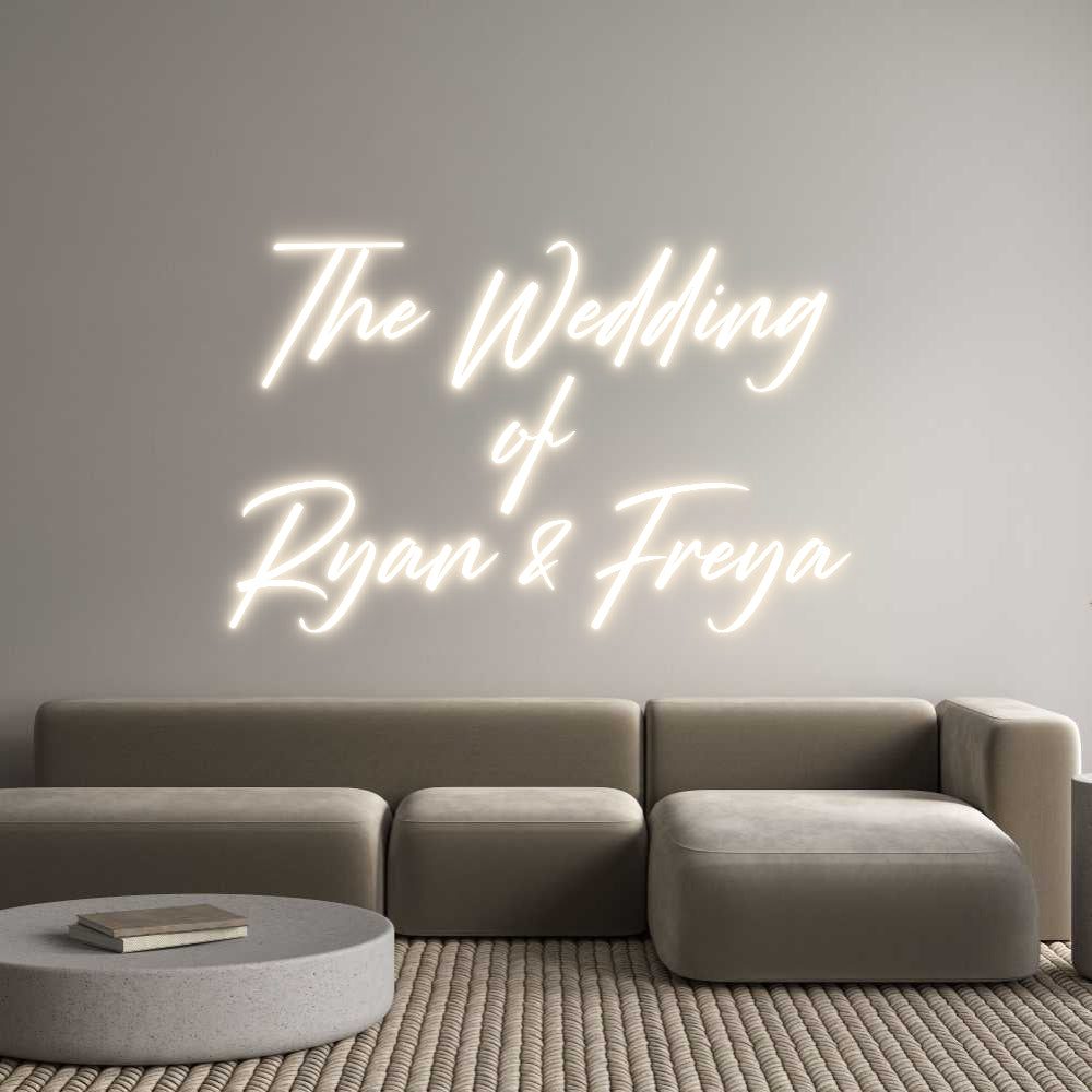 Text: The Wedding of Ryan & Freya Text Align: centerFont: StrudeColour: Warm WhiteSize: 100cm wide / 100cm X 92.35cm / 39.37in X 36.36inBackboard: Whole Board (free upgrade)Backboard Colour: Clear Acrylic BackboardJacket: White JacketMounting: HangingAdd a Heart or Star (Optio...