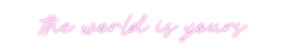 Text: THE WORLD IS YOURS Text Align: left Font: Rocket Colour: BlueSize: 100cm wide / 100cm X 9.2cm / 39.37in X 3.62inBackboard: Cut to ShapeJacket: Coloured JacketMounting: Wall mounting screwsNeon Tube Thickness: Classic Tube (6mm)Remote Dimmer: NoPower Mode: Power Adap...