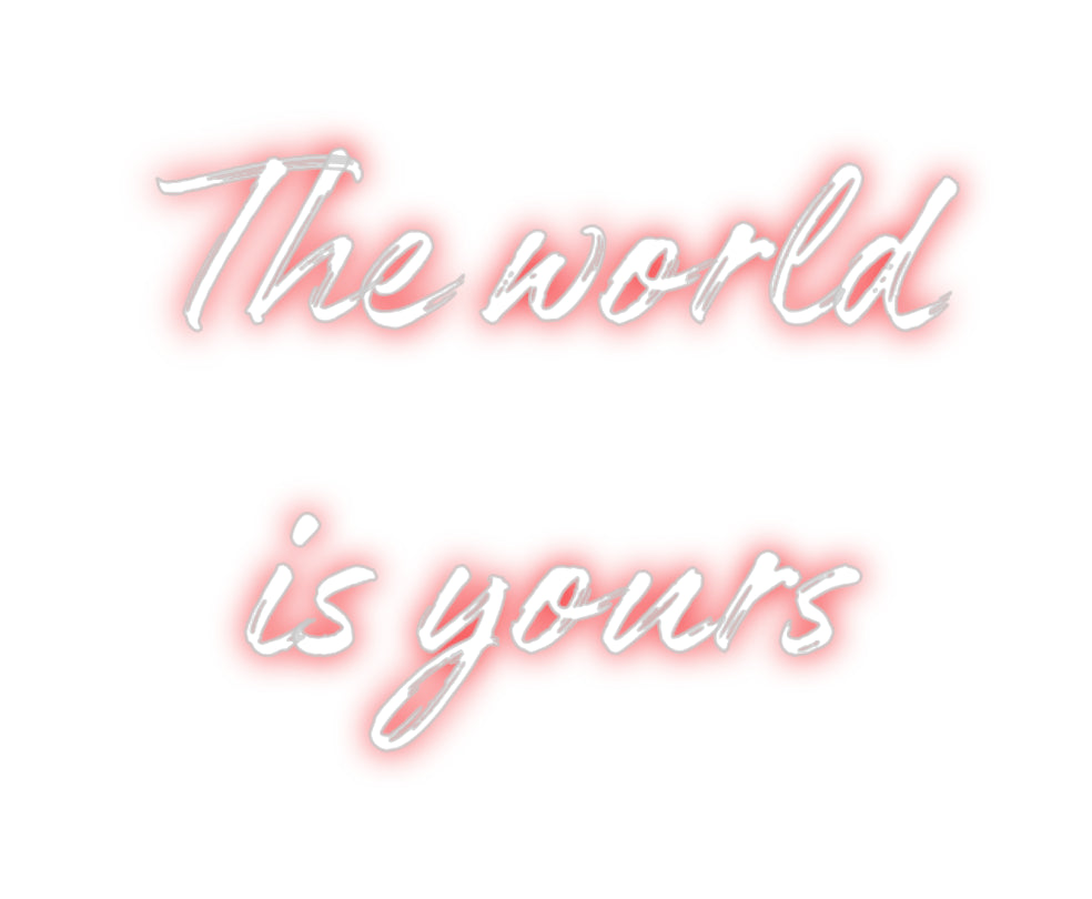 Text: The world is yours Text Align: center Font: NeonColour: RedSize: 100cm wide / 100cm X 36.33cm / 39.37in X 14.3inBackboard: Cut to ShapeBackboard Colour: Clear Acrylic BackboardJacket: Coloured JacketMounting: Wall mounting screwsAdd a Heart or Star (Optional): None (Def...