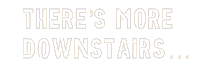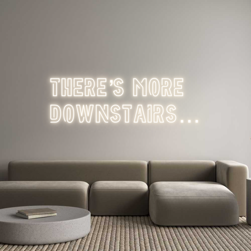 Text: There’s more Downstairs… Text Align: LeftFont: NeonColor: Warm WhiteSize: 80cm wide / 80cm X 24.74cm / 31.5in X 9.74inBackboard: Cut to ShapeBackboard Color: Clear Acrylic BackboardJacket: Coloured JacketMounting: Wall mounting screwsAdd a Heart or Star (Optional): None (Defau...