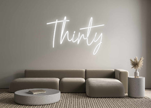 Text: Thirty Text Align: LeftFont: BayshoreColor: WhiteSize: 60cm wide / 60cm X 22.35cm / 23.62in X 8.8inMaterial: IndoorBackboard: Cut to ShapeBackboard Color: Clear Acrylic BackboardJacket: Coloured JacketMounting: HangingAdd a Heart or Star (Optional): None (Default)Neon Tube Thic...