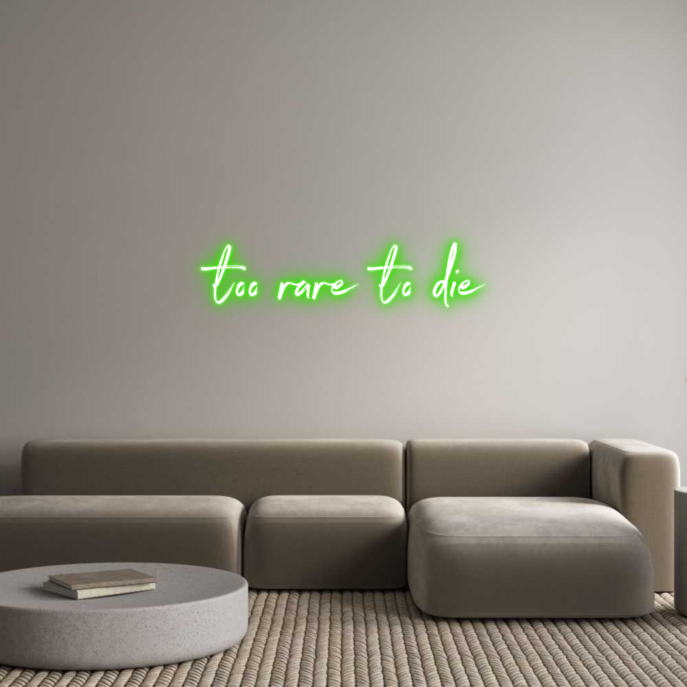 Text: too rare to die Text Align: LeftFont: NorthwellColor: GreenSize: 120cm wide / 120cm X 27.68cm / 47.24in X 10.9inBackboard: Cut to Letter (free upgrade)Jacket: Coloured JacketMounting: Wall mounting screwsAdd a Heart or Star (Optional): None (Default)Neon Tube Thickness: Bold Tu...