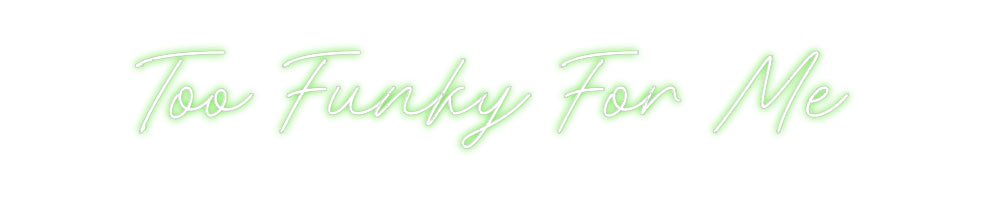 Text: Too Funky For Me Text Align: left Font: RocketColour: GreenSize: 100cm wide / 100cm X 14.23cm / 39.37in X 5.6inBackboard: Cut to Letter (free upgrade)Jacket: Coloured JacketMounting: Wall mounting screwsAdd a Heart or Star (Optional): None (Default)Neon Tube Thickness: Cl...