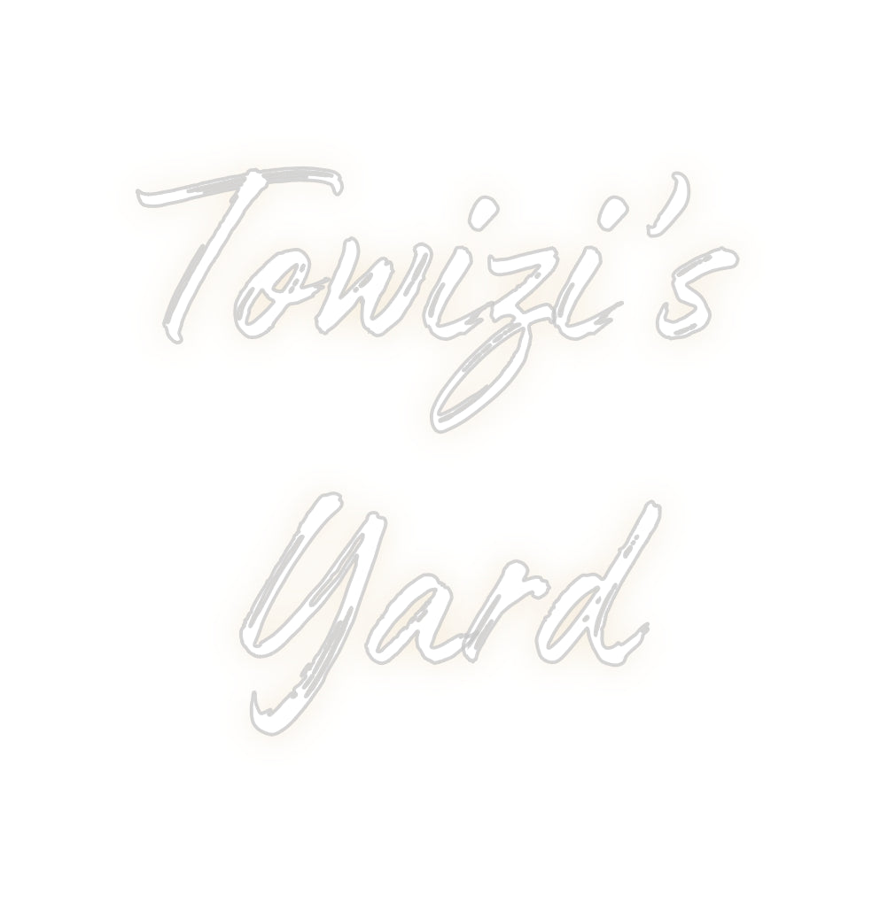 Text: Towizi’s Yard Text Align: center Font: WorldColour: Warm WhiteSize: 60cm wide / 60cm X 58.56cm / 23.62in X 23.05inBackboard: Cut to ShapeBackboard Colour: Clear Acrylic BackboardJacket: Coloured JacketMounting: Wall mounting screwsAdd a Heart or Star (Optional): None (De...