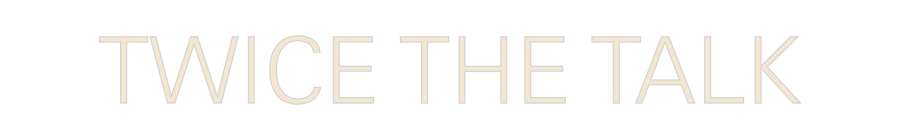 Text: TWICE THE TALK Text Align: leftFont: ZurichColour: Warm WhiteSize: 80cm wide / 80cm X 7.66cm / 31.5in X 3.02inBackboard: Cut to ShapeBackboard Colour: Clear Acrylic BackboardJacket: Coloured JacketMounting: Wall mounting screwsAdd a Heart or Star (Optional): None (Default)Neon ...