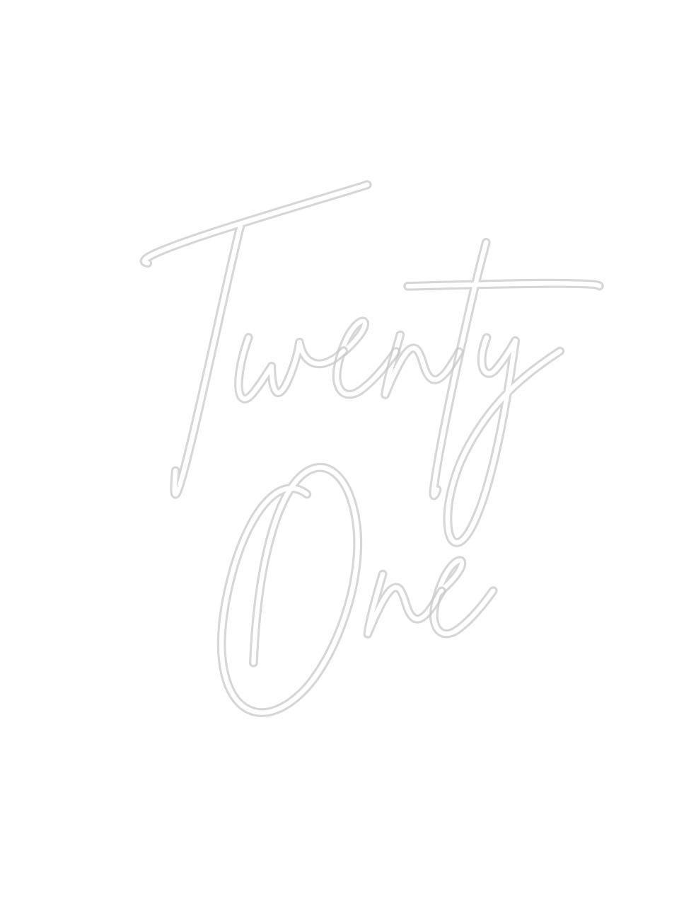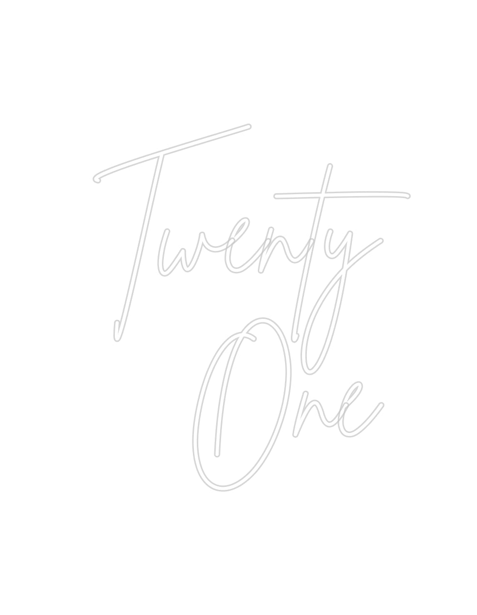 Text: Twenty One Text Align: right Font: BrittanyColour: WhiteSize: 100cm wide / 100cm X 122.74cm / 39.37in X 48.32inBackboard: Cut to ShapeBackboard Colour: Clear Acrylic BackboardJacket: Coloured JacketMounting: HangingAdd a Heart or Star (Optional): None (Default)Neon Tube...