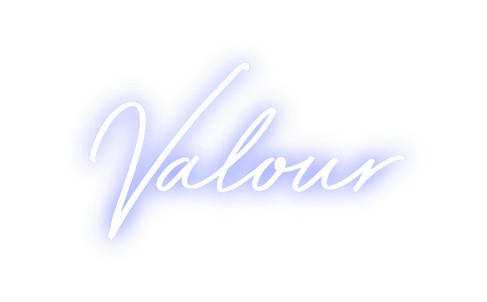 Text: Valour Text Align: left Font: BayshoreColour: BlueSize: 60cm wide / 60cm X 33.58cm / 23.62in X 13.22inBackboard: Cut to ShapeBackboard Colour: Clear Acrylic BackboardJacket: Coloured JacketMounting: HangingAdd a Heart or Star (Optional): None (Default)Neon Tube Thickness:...