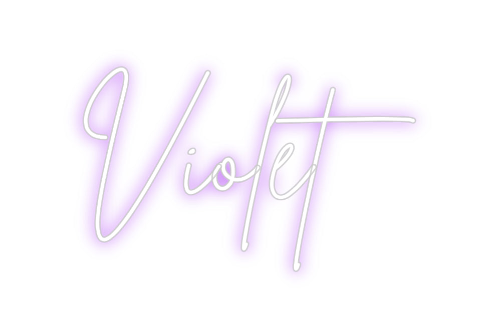 Text: Violet Text Align: LeftFont: WorldColor: PurpleSize: 60cm wide / 60cm X 21.03cm / 23.62in X 8.28inBackboard: Cut to ShapeBackboard Color: Clear Acrylic BackboardJacket: Coloured JacketMounting: Fast mount kitAdd a Heart or Star (Optional): None (Default)Neon Tube Thickness: Bol...