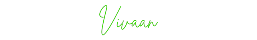 Text: Vivaan Text Align: leftFont: StrudeColour: GreenSize: 60cm wide / 60cm X 28.74cm / 23.62in X 11.32inBackboard: Cut to ShapeBackboard Colour: Clear Acrylic BackboardJacket: Coloured JacketMounting: Fast mount kitAdd a Heart or Star (Optional): None (Default)Neon Tube Thickness: ...