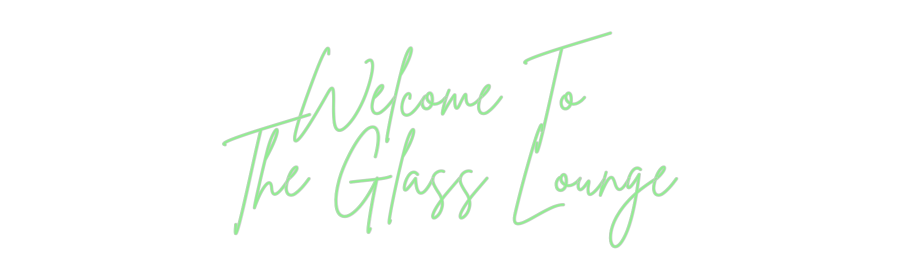 Text: Welcome To The Glass Lounge Text Align: CenterFont: BrittanyColor: Light GreenSize: 100cm wide / 100cm X 50.99cm / 39.37in X 20.07inMaterial: Outdoor (+30%) Backboard: Cut to Letter (free upgrade)Jacket: Coloured JacketMounting: HangingAdd a Heart or Star (Optional): HeartNeon Tube ...