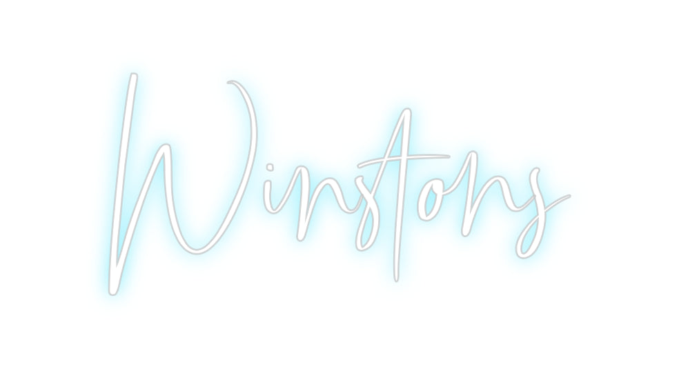 Text: Winstons Text Align: left Font: OttawaColour: Ice BlueSize: 60cm wide / 60cm X 28.97cm / 23.62in X 11.41inBackboard: Cut to Letter (free upgrade)Jacket: Coloured JacketMounting: Wall mounting screwsAdd a Heart or Star (Optional): None (Default)Neon Tube Thickness: Bold Tube (8m...