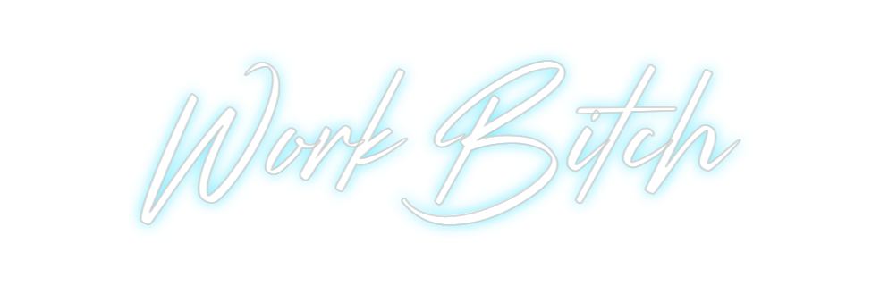 Text: Work Bitch Text Align: right Font: StrudeColour: Ice BlueSize: 60cm wide / 60cm X 15.88cm / 23.62in X 6.25inBackboard: Cut to ShapeBackboard Colour: Clear Acrylic BackboardJacket: Coloured JacketMounting: Wall mounting screwsAdd a Heart or Star (Optional): StarNeon Tube T...