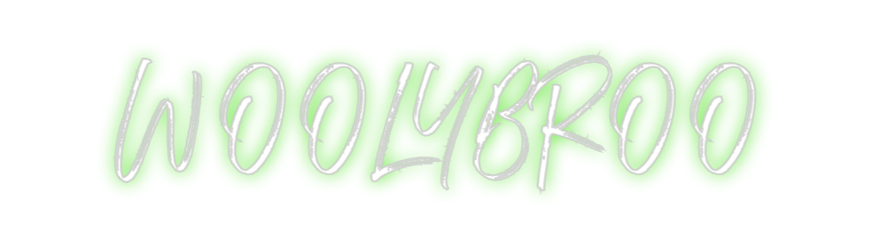 Text: WOOLYBROO Text Align: left Font: Northwell Colour: GreenSize: 60cm wide / 60cm X 13.23cm / 23.62in X 5.21inBackboard: Cut to ShapeBackboard Colour: Clear Acrylic BackboardJacket: Coloured JacketMounting: Wall mounting screwsNeon Tube Thickness: Bold Tube (8mm) (free...