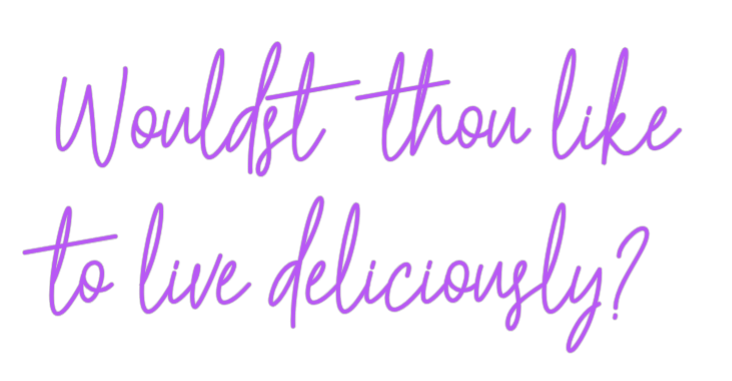 Text: Wouldst thou like to live deliciously? Text Align: LeftFont: HestericaColor: PurpleSize: 120cm wide / 120cm X 55.27cm / 47.24in X 21.76inMaterial: IndoorBackboard: Cut to Letter (free upgrade)Jacket: Coloured JacketMounting: Fast mount kitAdd a Heart or Star (Optional): None (Defaul...