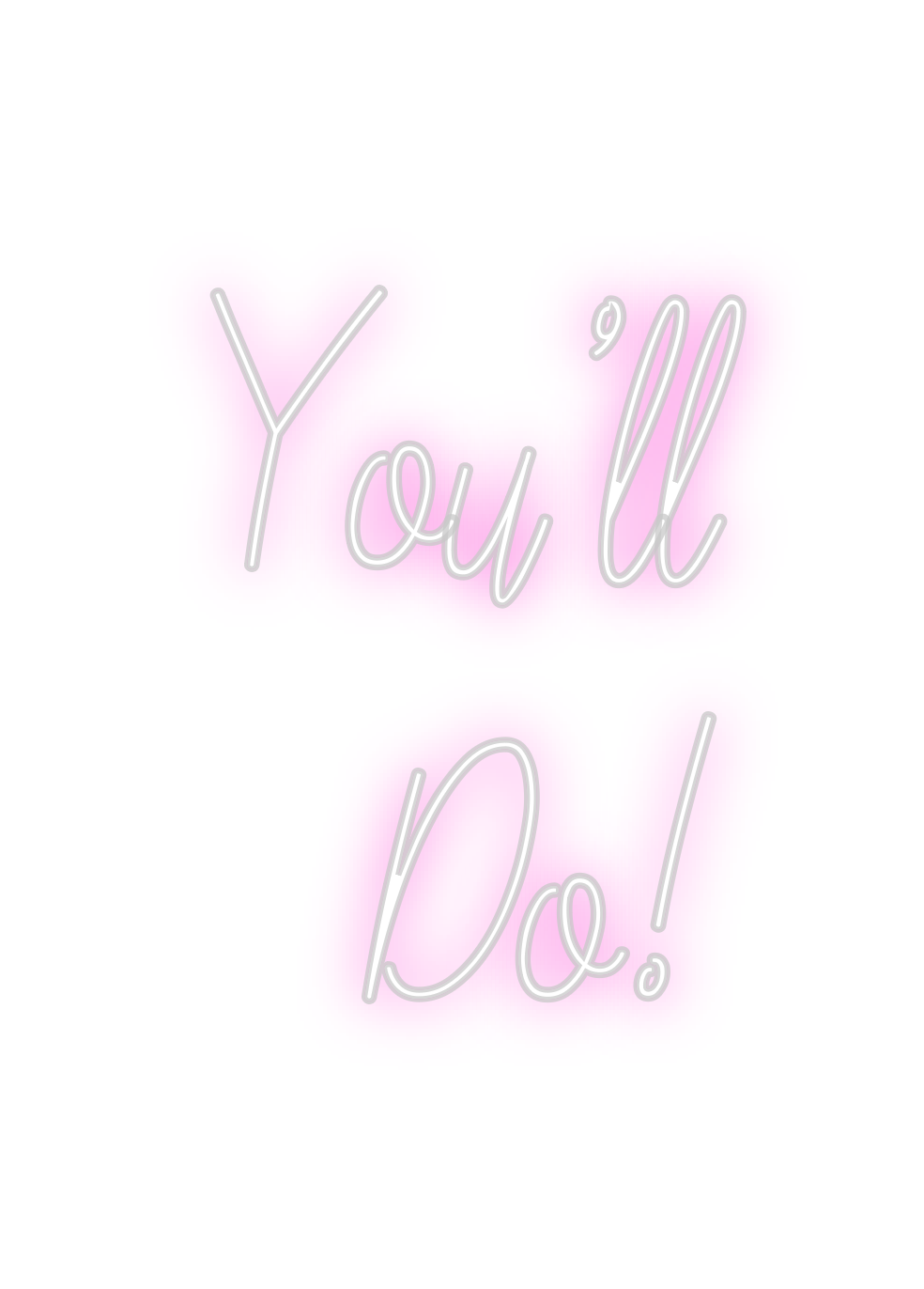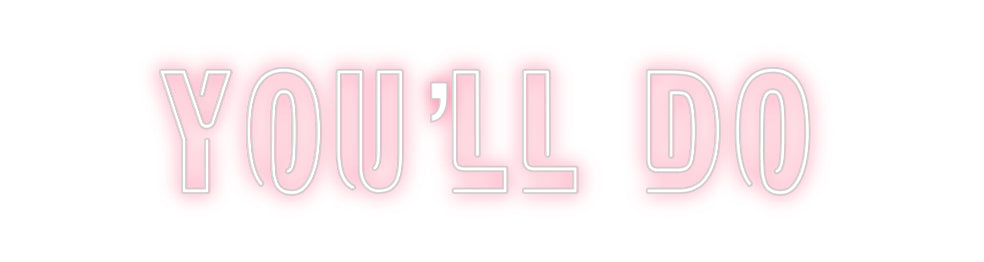Text: YOU’LL DO Text Align: left Font: NeonColour: Light RedSize: 100cm wide / 100cm X 20.6cm / 39.37in X 8.11inBackboard: Cut to Letter (free upgrade)Jacket: Coloured JacketMounting: Wall mounting screwsAdd a Heart or Star (Optional): None (Default)Neon Tube Thickness: Bold Tu...