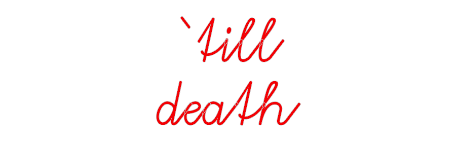 Text: ‘till death Text Align: CenterFont: GruenewaldColor: RedSize: 60cm wide / 60cm X 52.58cm / 23.62in X 20.7inBackboard: Cut to ShapeBackboard Color: Clear Acrylic BackboardJacket: Coloured JacketMounting: Wall mounting screwsAdd a Heart or Star (Optional): None (Default)Neon Tub...