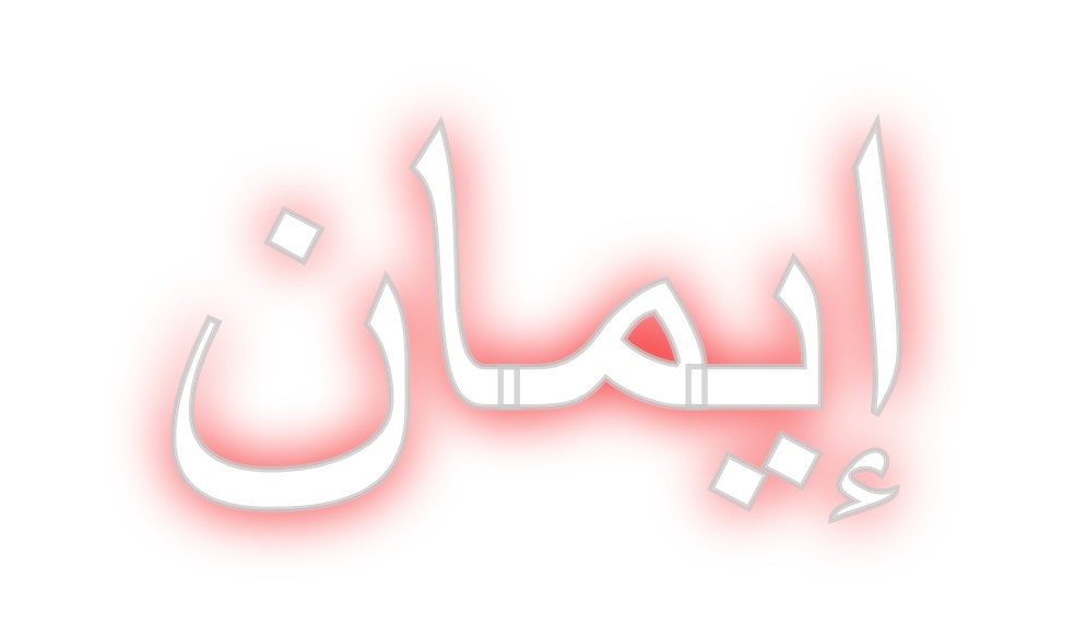 Text: إيمان Text Align: left Font: RocketColour: Colour Changing Neon sign/ RGB +85% price increase. Lights can be controlled through remoteSize: 40cm wide / 40cm X 21.34cm / 15.75in X 8.4inBackboard: Cut to ShapeBackboard Colour: Clear Acrylic BackboardJacket: Coloured JacketMountin...