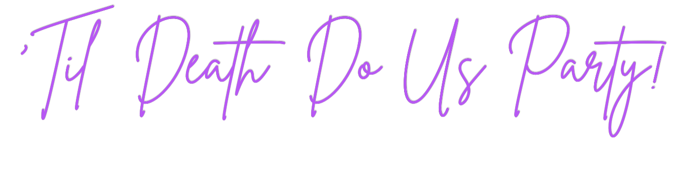 Text: ‘Til Death Do Us Party! Text Align: LeftFont: BrittanyColor: PurpleSize: 120cm wide / 120cm X 26.28cm / 47.24in X 10.35inMaterial: IndoorBackboard: Cut to ShapeBackboard Color: Clear Acrylic BackboardJacket: Coloured JacketMounting: HangingAdd a Heart or Star (Optional): HeartNeon Tub...