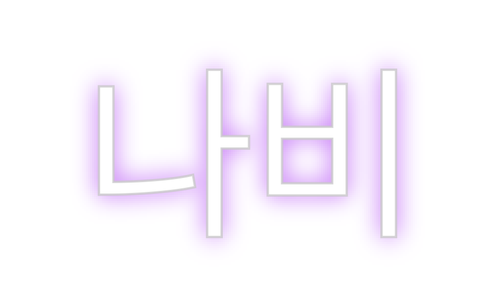 Text: 나비 Text Align: left Font: Rocket Colour: PurpleSize: 40cm wide / 40cm X 21.97cm / 15.75in X 8.65inBackboard: Cut to ShapeBackboard Colour: Clear Acrylic BackboardJacket: Coloured JacketMounting: Wall mounting screwsNeon Tube Thickness: Bold Tube (8mm) (free upgrade)...