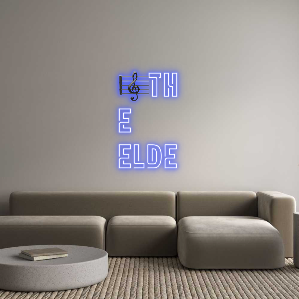 Text: 🎼Th e Elde Text Align: leftFont: NeonColor: BlueSize: 40cm wide / 40cm X 59.78cm / 15.75in X 23.54inBackboard: Cut to ShapeBackboard Color: Clear Acrylic BackboardJacket: Coloured JacketMounting: Wall mounting screwsAdd a Heart or Star (Optional): None (Default)Neon Tube Thic...