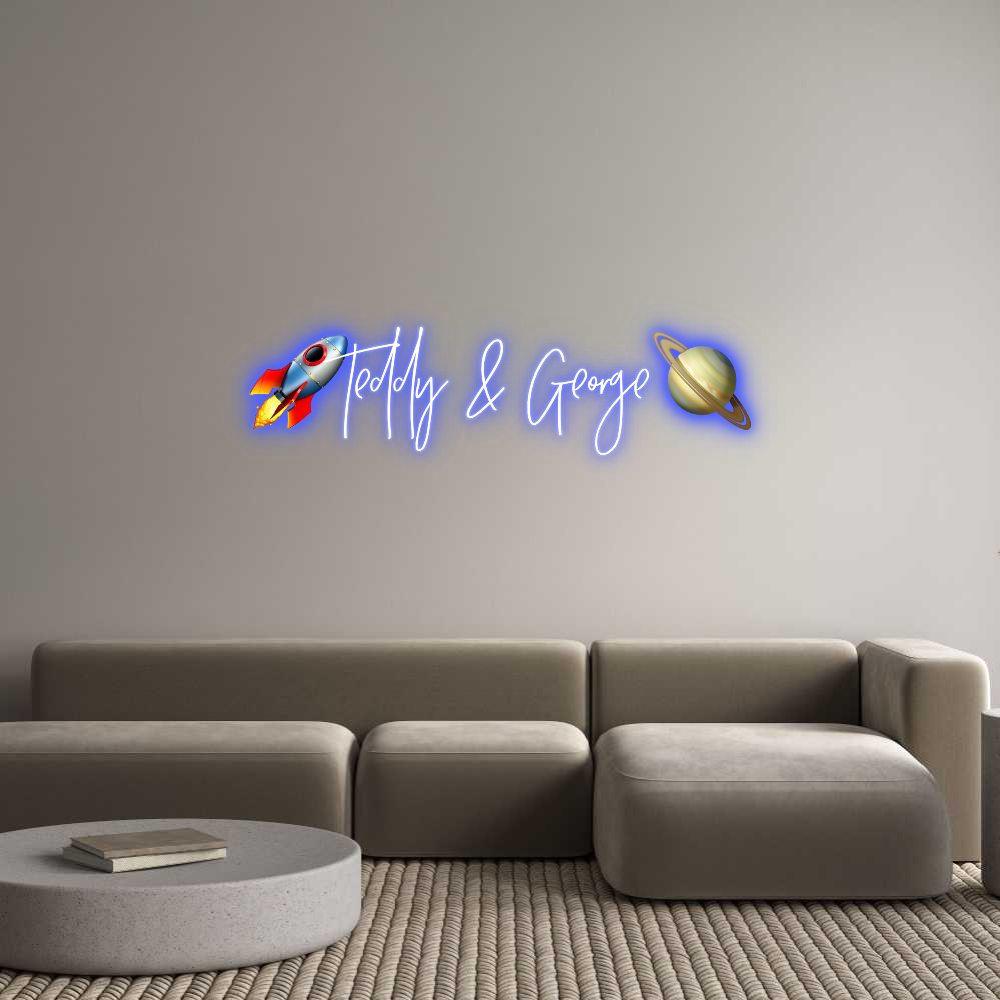Text: 🚀Teddy & George🪐 Text Align: LeftFont: CrystalColor: BlueSize: 120cm wide / 120cm X 28.84cm / 47.24in X 11.35inMaterial: IndoorBackboard: Whole Board (free upgrade)Backboard Color: Clear Acrylic BackboardJacket: Coloured JacketMounting: Wall mounting screwsAdd a Heart or Star (Opt...