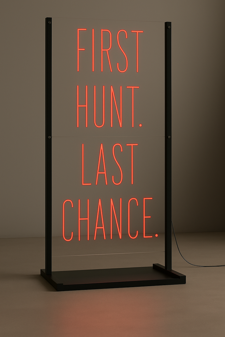 Custom Sign: FIRST HUNT. LAST CHANCE.