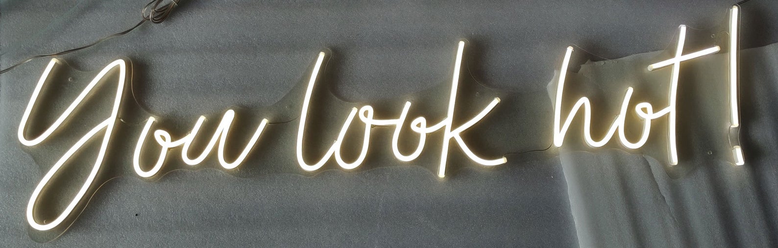You look hot neon sign Neon Sign Materials Acrylic, LED, PVC Dimensions Height: 8 Inches; Width: 24 Inches; Depth: 1 Inch This is flex LED neon sign, flexible silicon tubes with LED lights inside tubes look like vintage glass neon sign. Flex LED neon sign is safe, non-frangible. It's be...