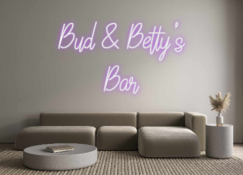 Text: Bud & Betty's Bar Text Align: center Font: PoiretColour: PurpleSize: 100cm wide / 100cm X 39.04cm / 39.37in X 15.37inBackboard: Cut to Letter (free upgrade)Jacket: Coloured JacketMounting: Wall mounting screwsAdd a Heart or Star (Optional): None (Default)Neon Tube Thi...