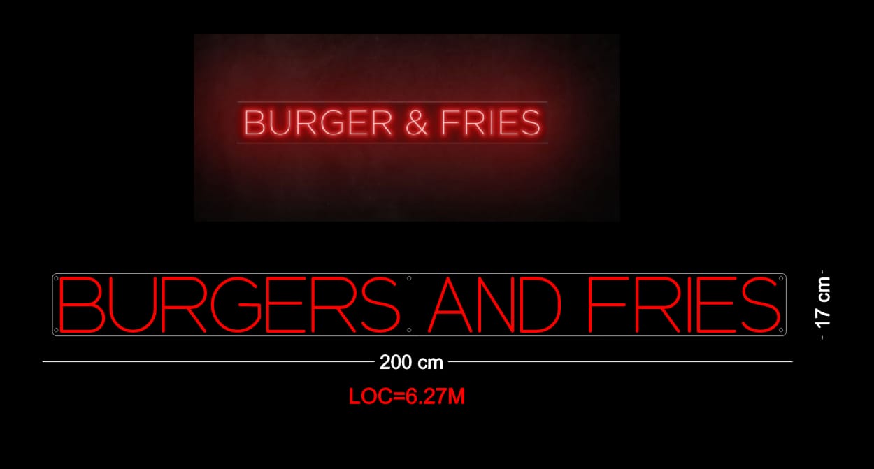 Text: burgers Text Align: left Font: NeonColour: RedSize: 60cm wide / 60cm X 13.99cm / 23.62in X 5.51inBackboard: Whole Board (free upgrade)Backboard Colour: Clear Acrylic BackboardJacket: Coloured JacketMounting: Wall mounting screwsAdd a Heart or Star (Optional): None (Defaul...