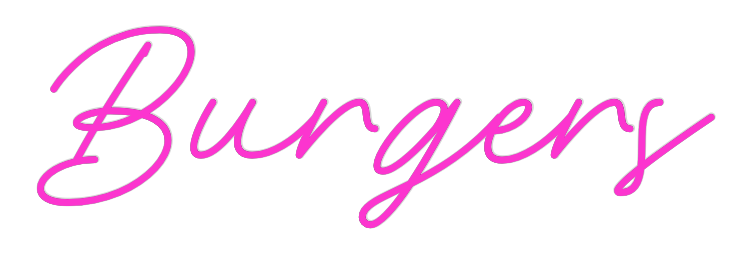Text: Burgers Text Align: LeftFont: KabelColor: PinkSize: 80cm wide / 80cm X 23.5cm / 31.5in X 9.25inBackboard: Cut to ShapeBackboard Color: Clear Acrylic BackboardJacket: White JacketMounting: Wall mounting screwsAdd a Heart or Star (Optional): None (Default)Neon Tube Thickness: Cla...
