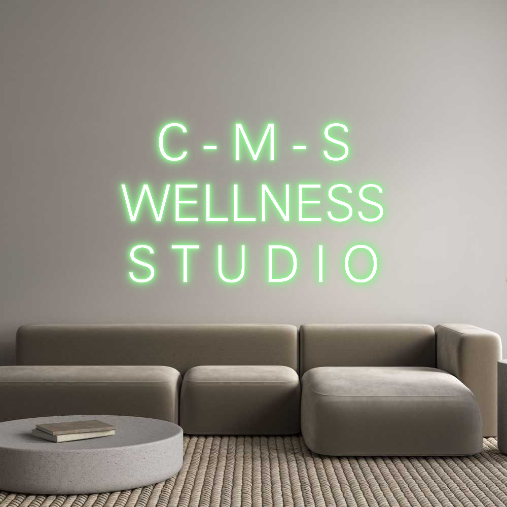 Text: C - M - S WELLNESS S T U D I O Text Align: centerFont: ZurichColour: Light GreenSize: 80cm wide / 80cm X 50.49cm / 31.5in X 19.88inBackboard: Whole Board (free upgrade)Backboard Colour: Clear Acrylic BackboardJacket: Coloured JacketMounting: Wall mounting screwsAdd a Heart or...