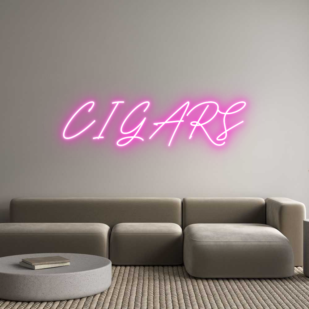Text: CIGARS Text Align: CenterFont: RocketColor: PinkSize: 60cm wide / 60cm X 14.89cm / 23.62in X 5.86inMaterial: IndoorBackboard: Cut to ShapeBackboard Color: Clear Acrylic BackboardJacket: Coloured JacketMounting: HangingAdd a Heart or Star (Optional): None (Default)Neon Tube Thickness: ...