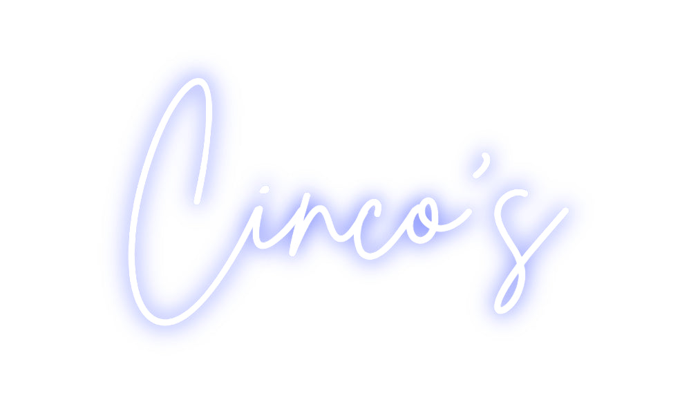 Text: Cinco's Text Align: center Font: BrittanyColour: BlueSize: 80cm wide / 80cm X 42.25cm / 31.5in X 16.63inBackboard: Cut to Letter (free upgrade)Jacket: White JacketMounting: Wall mounting screwsAdd a Heart or Star (Optional): None (Default)Neon Tube Thickness: Bold Tube (8...