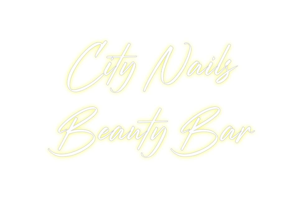 Text: City Nails Beauty Bar Text Align: center Font: StrudeColour: YellowSize: 120cm wide / 120cm X 70.15cm / 47.24in X 27.62inBackboard: Cut to Letter (free upgrade)Jacket: Coloured JacketMounting: HangingAdd a Heart or Star (Optional): None (Default)Neon Tube Thickness: Bol...