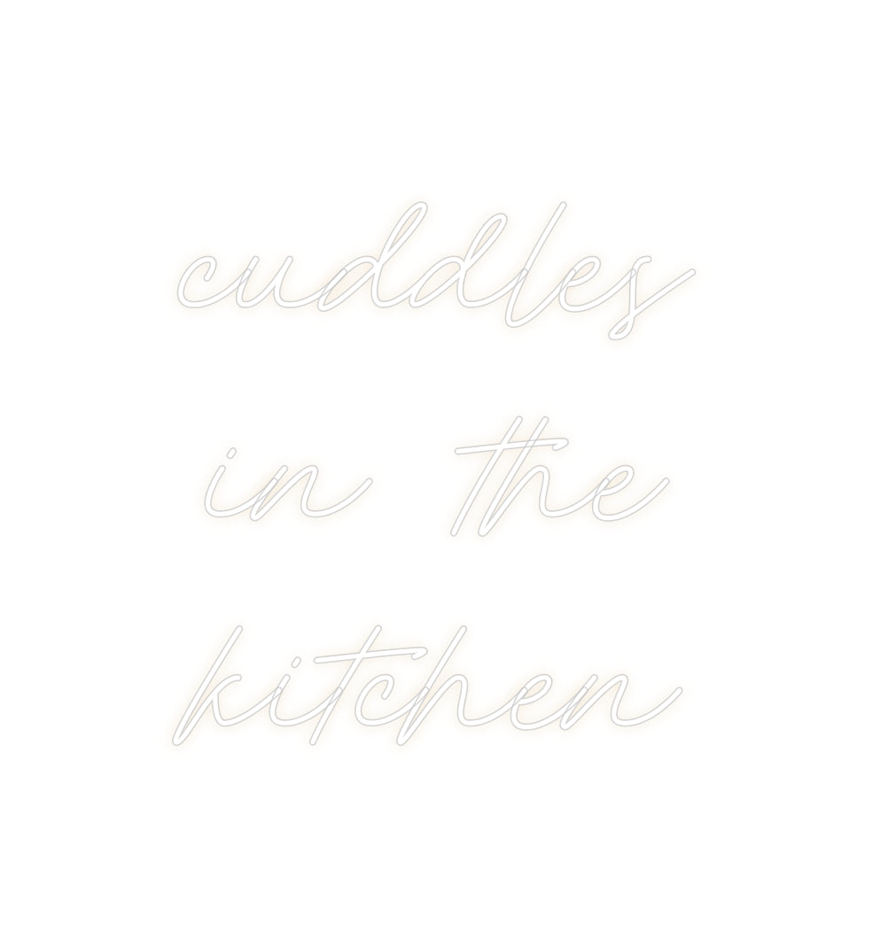 Text: cuddles in the kitchen Text Align: center Font: RocketColour: Warm WhiteSize: 60cm wide / 60cm X 61.57cm / 23.62in X 24.24inBackboard: Cut to Letter (free upgrade)Jacket: Coloured JacketMounting: Wall mounting screwsAdd a Heart or Star (Optional): None (Default)Neon T...