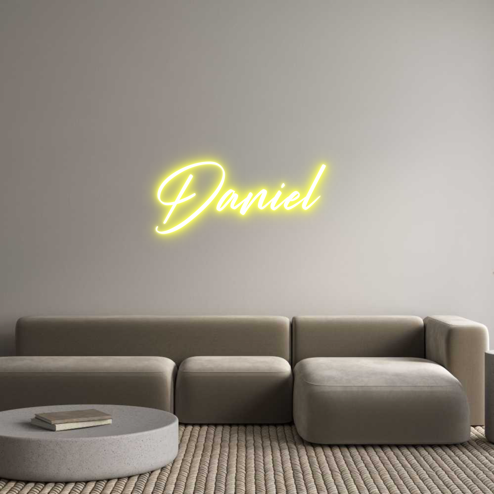 Text: Daniel Text Align: leftFont: StrudeColour: YellowSize: 60cm wide / 60cm X 25.45cm / 23.62in X 10.02inBackboard: Cut to ShapeBackboard Colour: Clear Acrylic BackboardJacket: Coloured JacketMounting: Wall mounting screwsAdd a Heart or Star (Optional): None (Default)Neon Tube Thi...