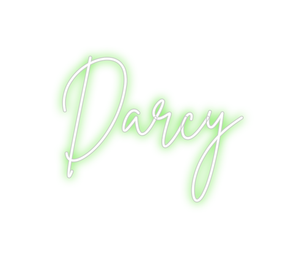 Text: Darcy Text Align: left Font: BrittanyColour: GreenSize: 40cm wide / 40cm X 31.77cm / 15.75in X 12.51inBackboard: Cut to ShapeBackboard Colour: Clear Acrylic BackboardJacket: White JacketMounting: Wall mounting screwsNeon Tube Thickness: Classic Tube (6mm)Remote Dimmer: Ye...