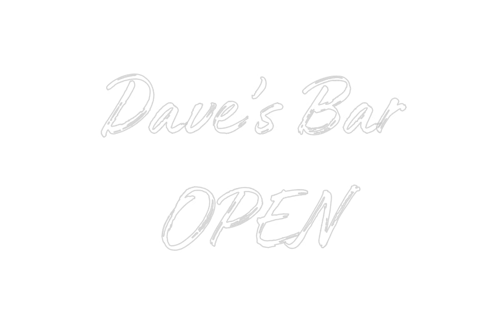 Text: Dave’s Bar OPEN Text Align: center Font: WorldColour: WhiteSize: 60cm wide / 60cm X 35.01cm / 23.62in X 13.78inBackboard: Cut to Letter (free upgrade)Jacket: Coloured JacketMounting: Wall mounting screwsAdd a Heart or Star (Optional): None (Default)Neon Tube Thickness: C...