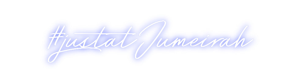 Text: #justatJumeirah Text Align: center Font: BayshoreColour: BlueSize: 120cm wide / 120cm X 25.86cm / 47.24in X 10.18inBackboard: Cut to Letter (free upgrade)Jacket: White JacketMounting: HangingAdd a Heart or Star (Optional): HeartNeon Tube Thickness: Bold Tube (8mm) (free u...