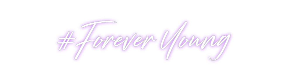 Text: #Forever Young Text Align: left Font: StrudeColour: PurpleSize: 120cm wide / 120cm X 26.79cm / 47.24in X 10.55inBackboard: Cut to Letter (free upgrade)Jacket: Coloured JacketMounting: Wall mounting screwsAdd a Heart or Star (Optional): None (Default)Neon Tube Thickness: B...